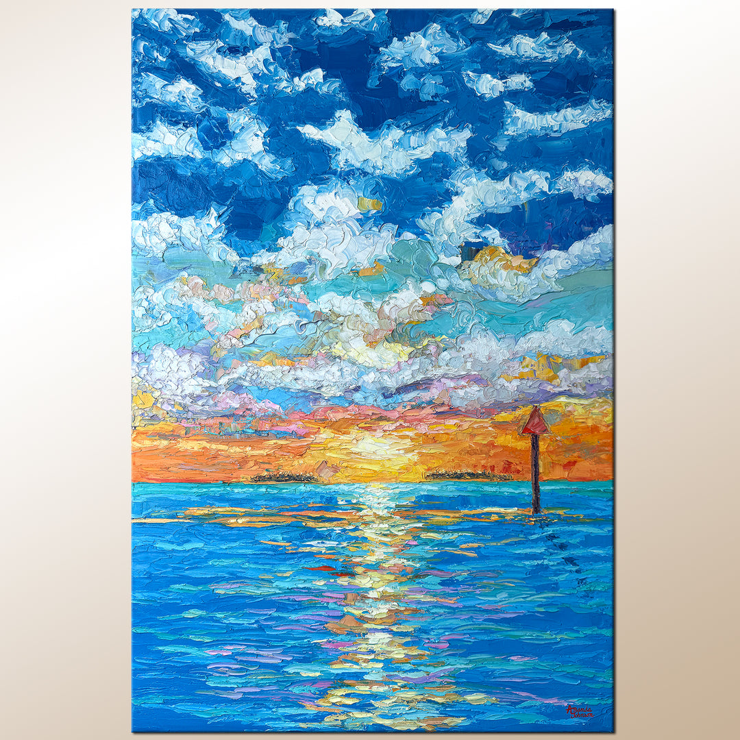 This collection of paintings are ready to leave the gallery.